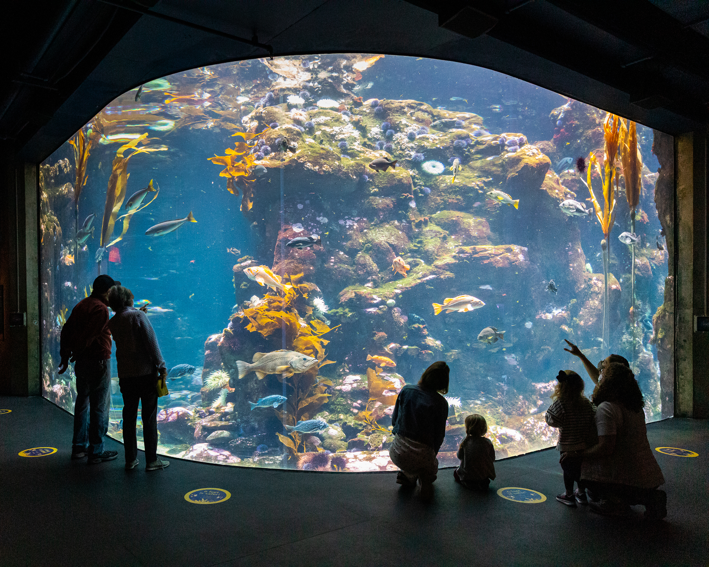 California Coast invites visitors to explore the astounding richness of our own coastal waters. Be dazzled by an enormous window revealing the underwater haunts of eels, anemones, rockfish and take in a series of smaller jewel tanks highlighting some of the area’s most fascinating residents.